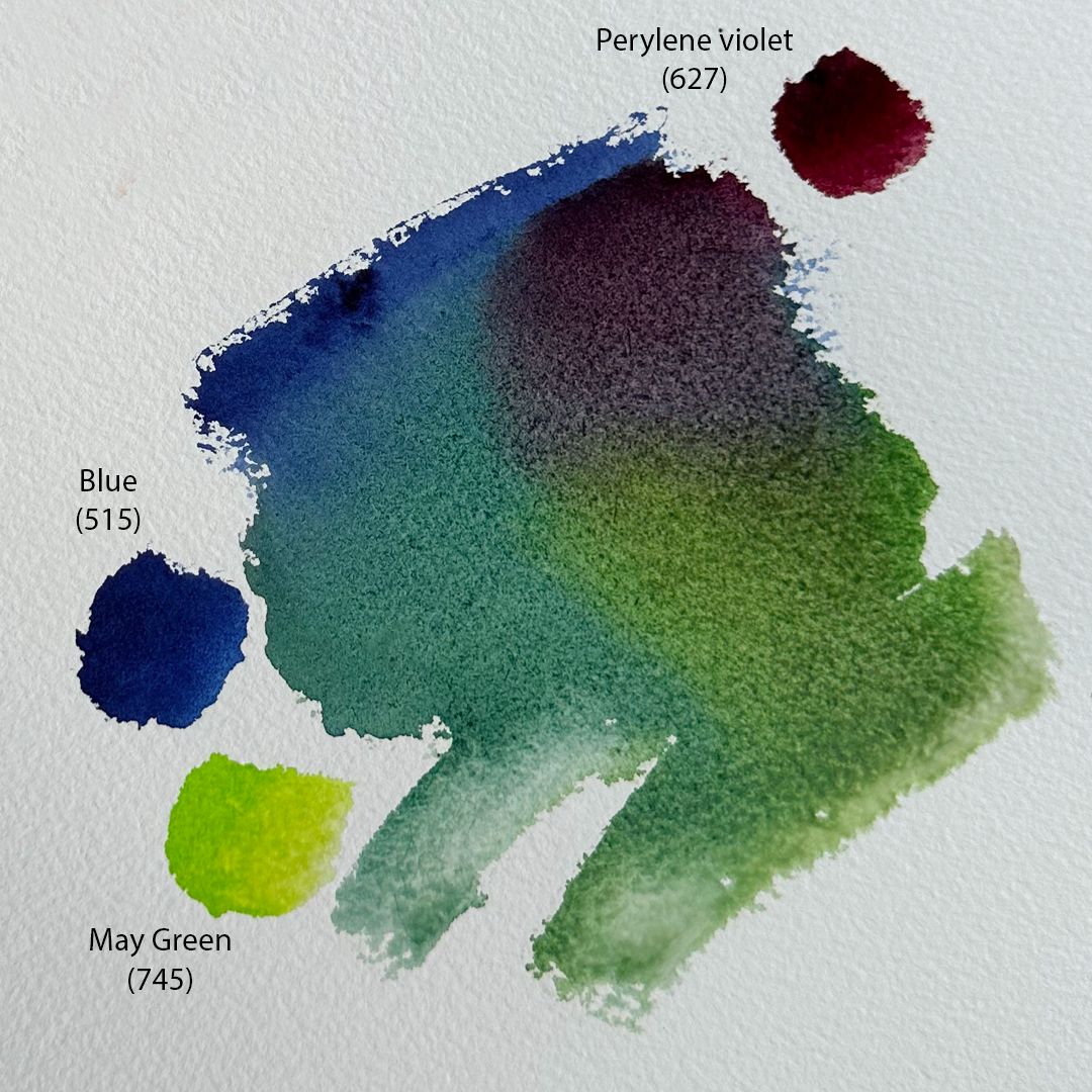 For the central flower, I make a basic mixture of Perylene violet + Geranium Red and get a deep and sonorous purple colour. With them I write shadows in the depths of the bud. Towards the end of the petals, I lighten the mixture and make it colder by adding Neon Pink or Blue with lots of water.