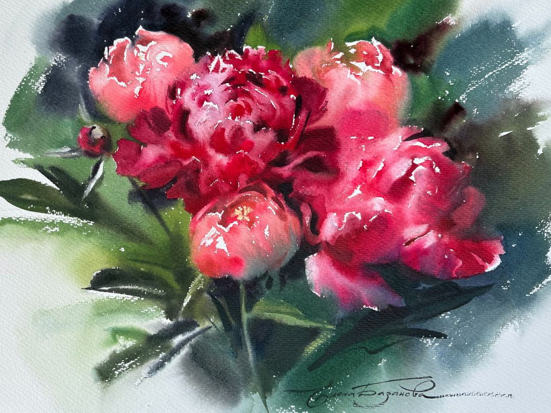 Watercolour Sketch of Peonies. Plein air with Elena Bazanova